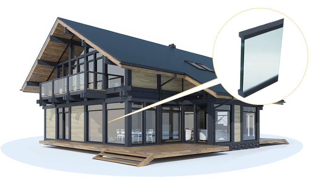Несущие конструкции из клееного бруса - это «скелет дома», который позволяет создавать большие пролеты и пространства помещений и использовать безрамное остекление. Стеклопакеты встроены в конструкции из бруса в заранее подготовленные прорези без использования профиля или рам, без применения монтажной пены. Такая технология обеспечивает прочность, долговечность и энергоэффективность домов, что позволяет нашей компании давать гарантию на дом - 50 лет.